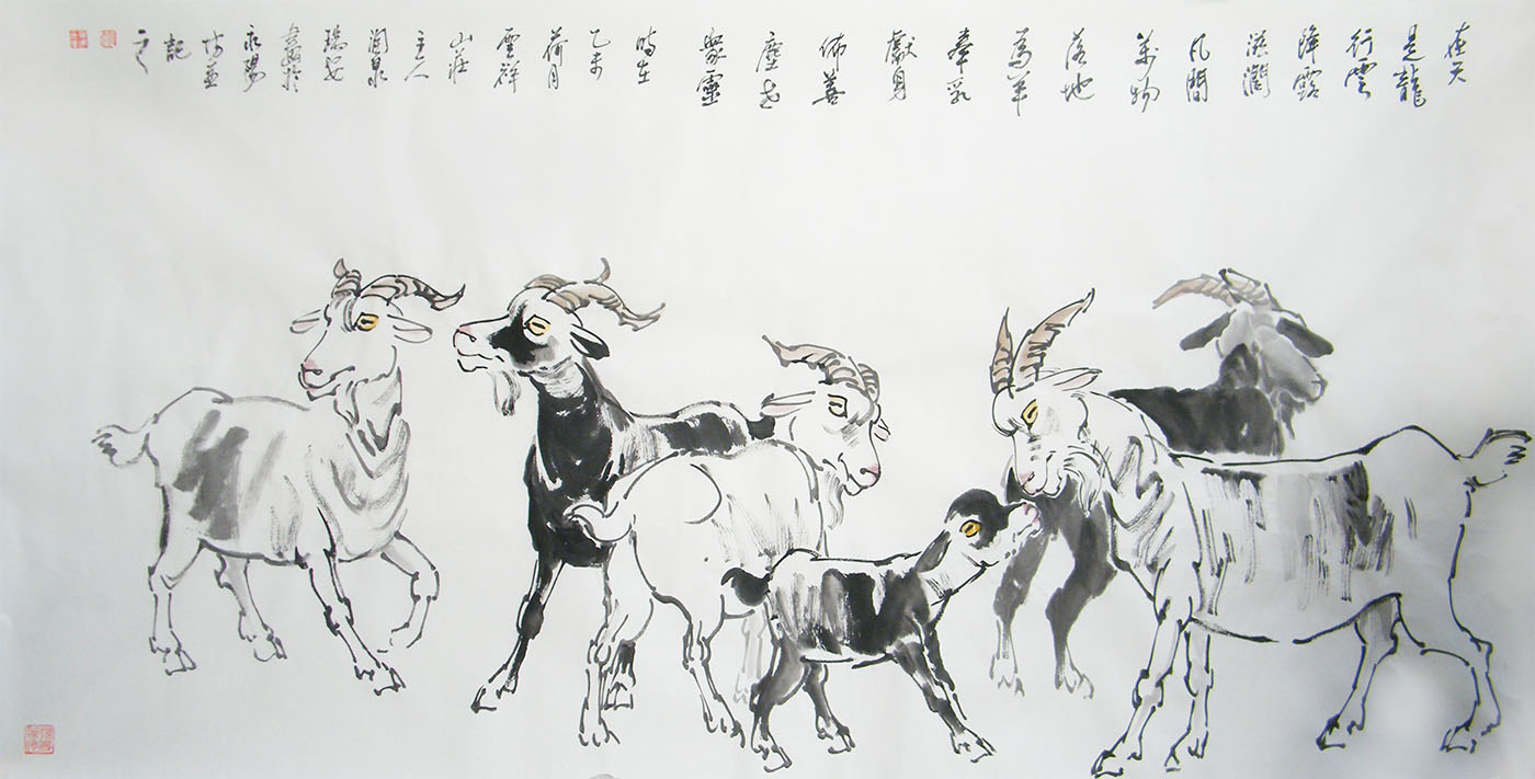 《五羊闹春》入选台湾中华书画艺术研究会举办的“新世纪名家书画展” 。